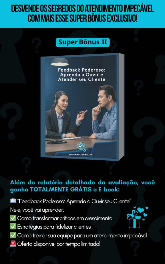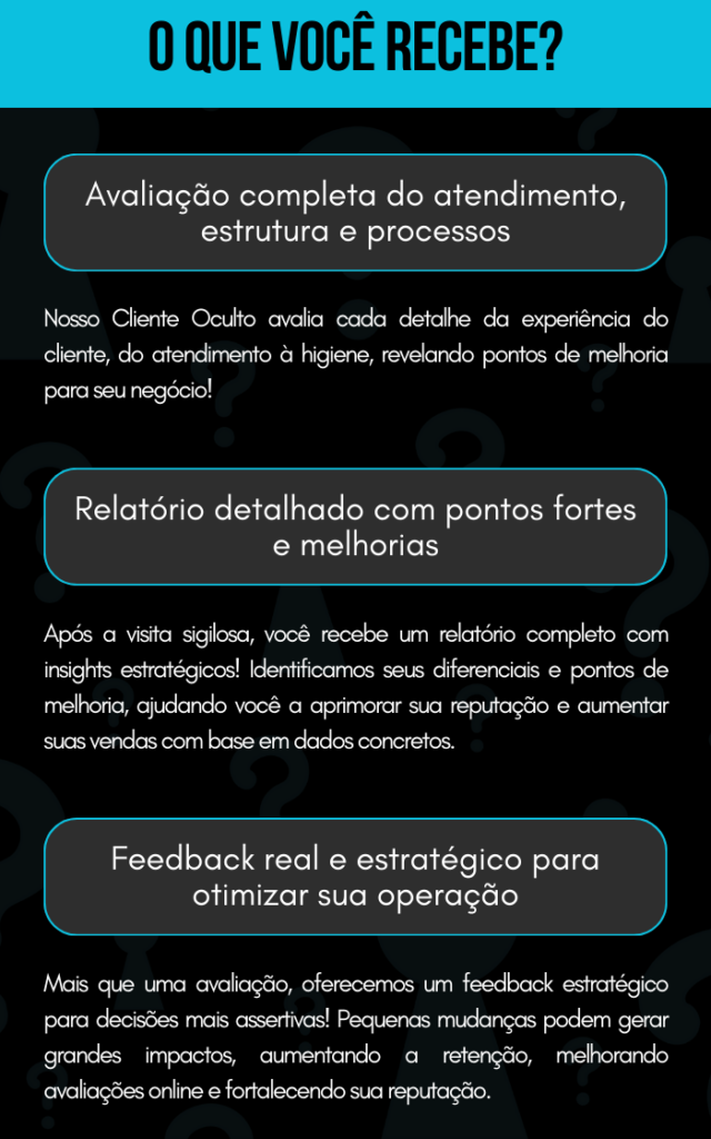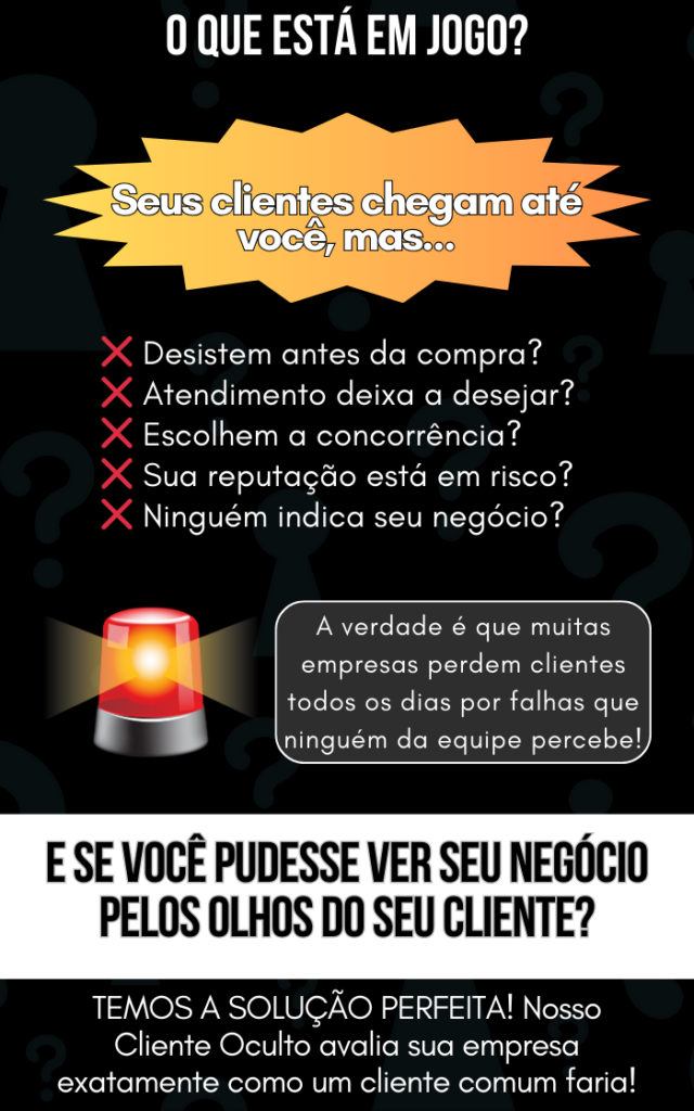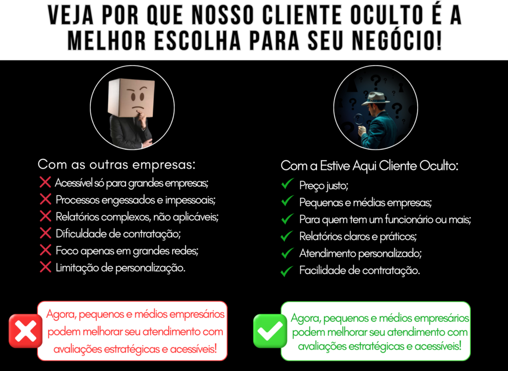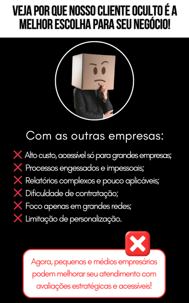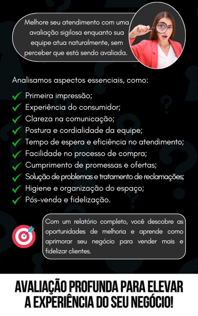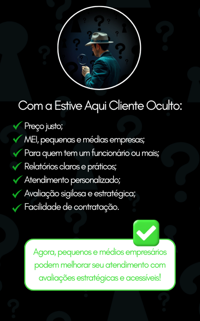 💬 Contratar um serviço de Cliente Oculto foi essencial para identificar como os clientes se sentiam ao visitar nossa loja e se realmente entendiam nossos diferenciais. Ajustamos a comunicação e já notamos um aumento nas recompras!