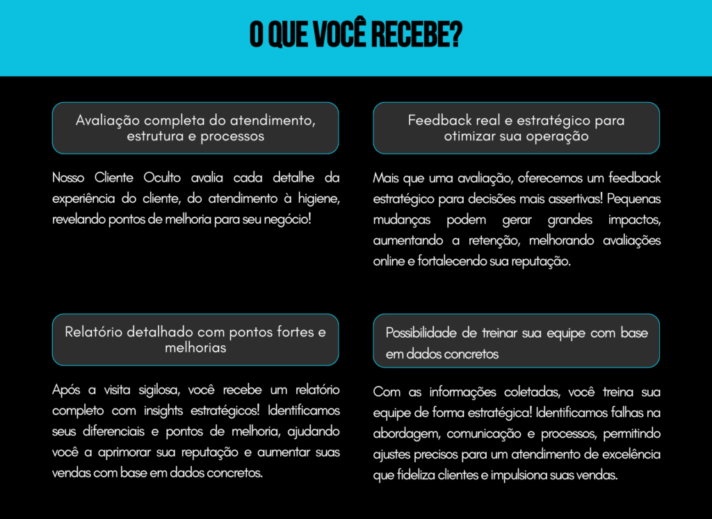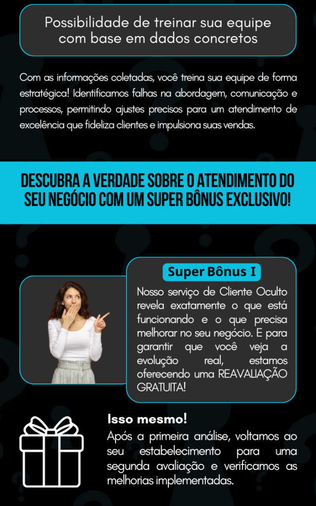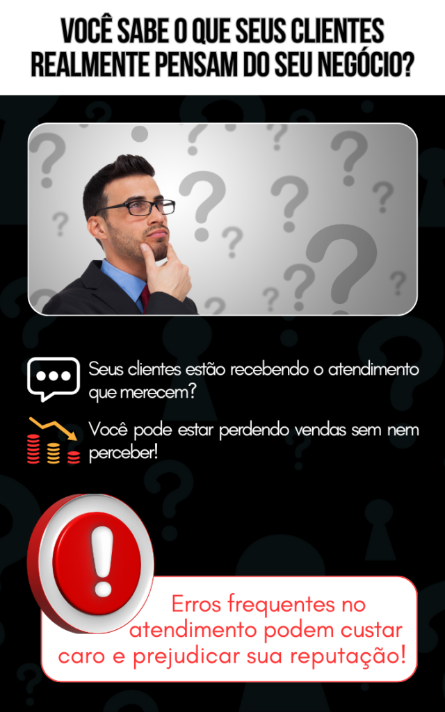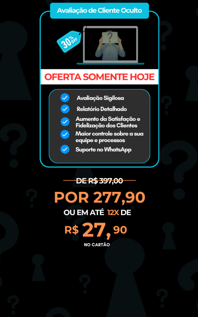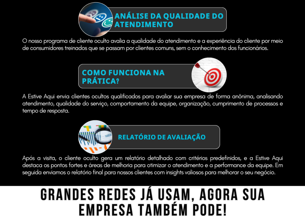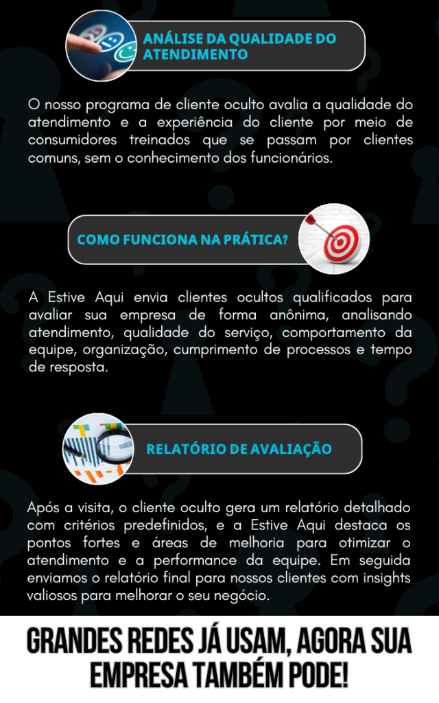 💬 Contratar um serviço de Cliente Oculto foi essencial para identificar como os clientes se sentiam ao visitar nossa loja e se realmente entendiam nossos diferenciais. Ajustamos a comunicação e já notamos um aumento nas recompras!